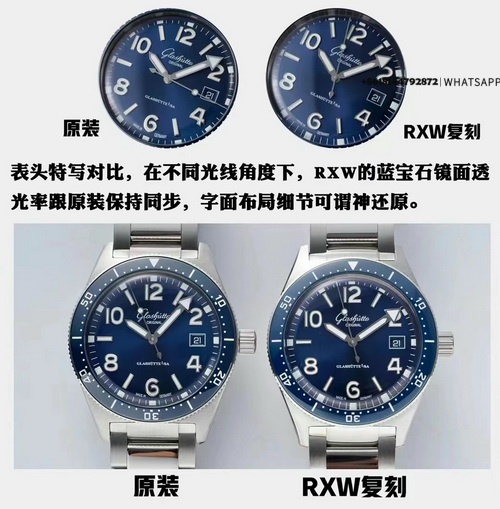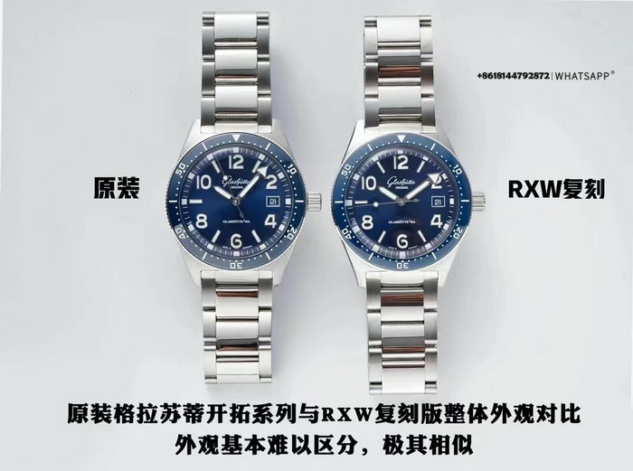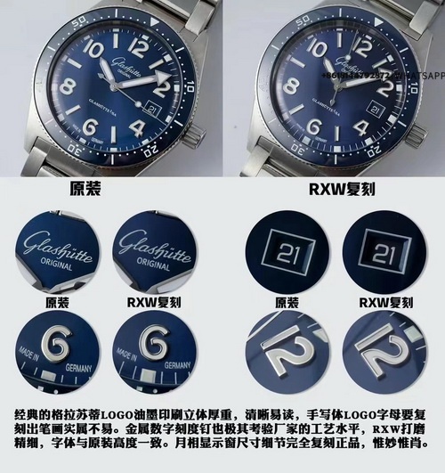 Реплики часов известного немецкого бренда GLASHÜTTE ORIGINAL встречаются довольно редко из-за высокой сложности механизмов этой марки. Кроме того, большинство моделей имеют прозрачную заднюю крышку, что серьёзно усложняет процесс производства. Сегодня мы представляем серию SPEZIALIST — модель с непрозрачной задней крышкой. В линейке доступно три цветовых варианта. В данном обзоре мы используем синюю версию. На фотографиях: слева — оригинал, справа — реплика.