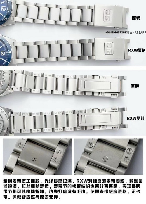 Браслеты дайверских механических часов обычно имеют сложную конструкцию. У данной модели присутствует механизм расширения, полностью идентичный оригинальному. Также предусмотрена система быстрой регулировки, позволяющая изменять длину браслета без использования инструментов.