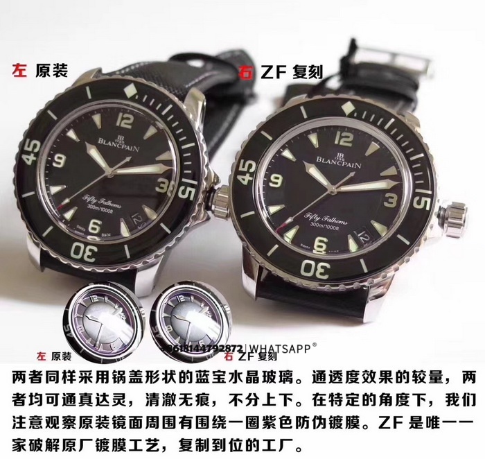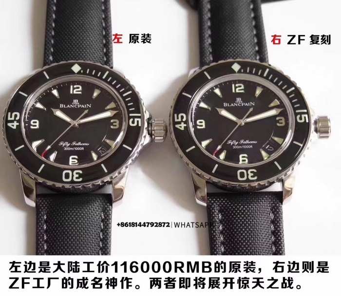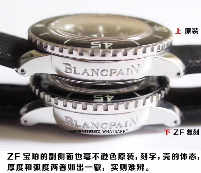 Дайверские часы Blancpain Fifty Fathoms — популярная модель с диаметром корпуса 45 мм. На фото ниже: слева — оригинал, справа — реплика. В этой статье представлен подробный сравнительный обзор часов с разных ракурсов. В разделе «Обзоры» на нашем сайте опубликовано множество сравнений оригиналов и качественных реплик, и информация постоянно обновляется — всем заинтересованным рекомендуем ознакомиться.