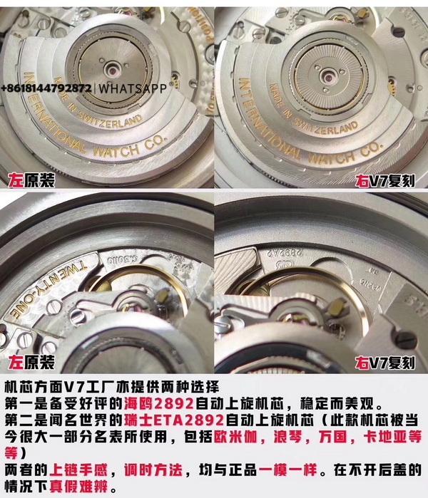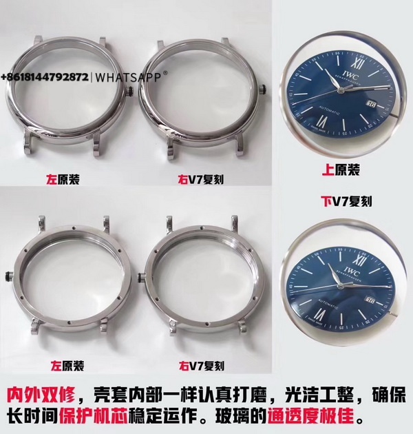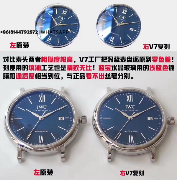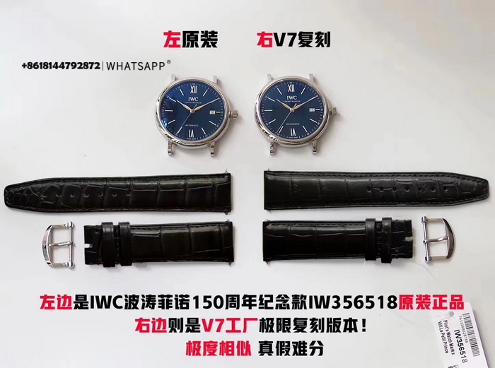 Это часы IWC Portofino в edición на 100-летие, которые доступны в нескольких цветах циферблата. В данной статье проводится сравнение между оригинальными и копиями этих часов. На следующих изображениях слева показаны оригинальные часы, а справа — копии.