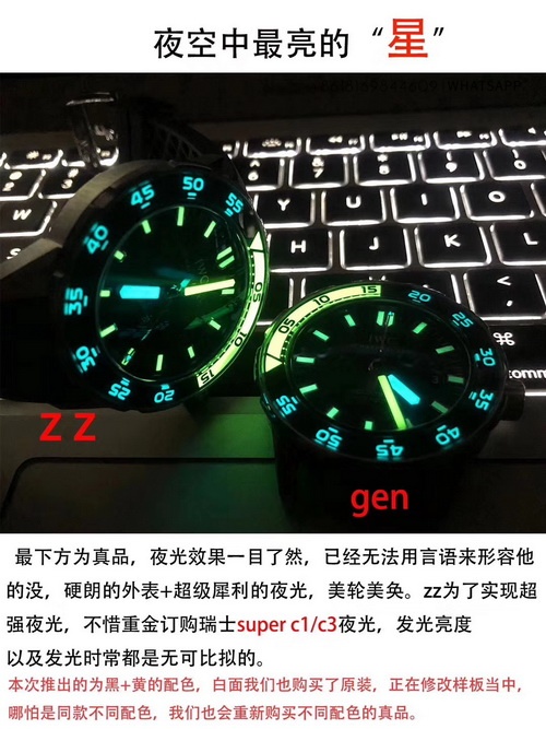 Следующее изображение демонстрирует светосветящееэффект. Копия часов IWC AQUATIMER использует импортированную из Швейцарии люминоrescentную пудру SUPER C1/C3, и ее яркость полностью совпадает с яркостью оригинальной версии.