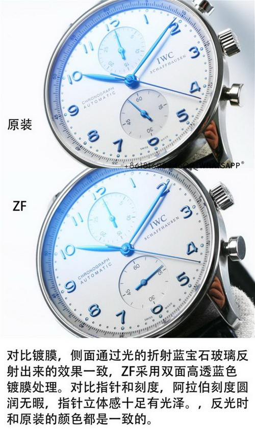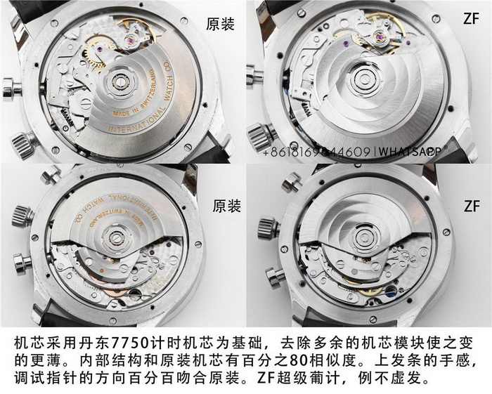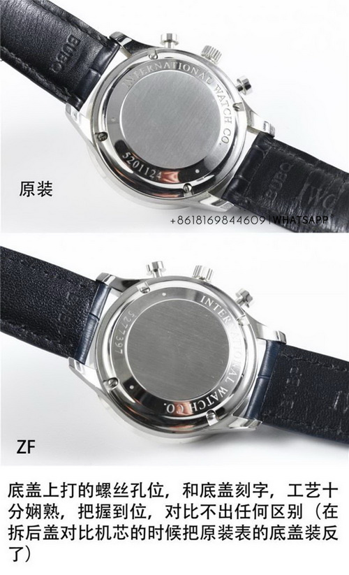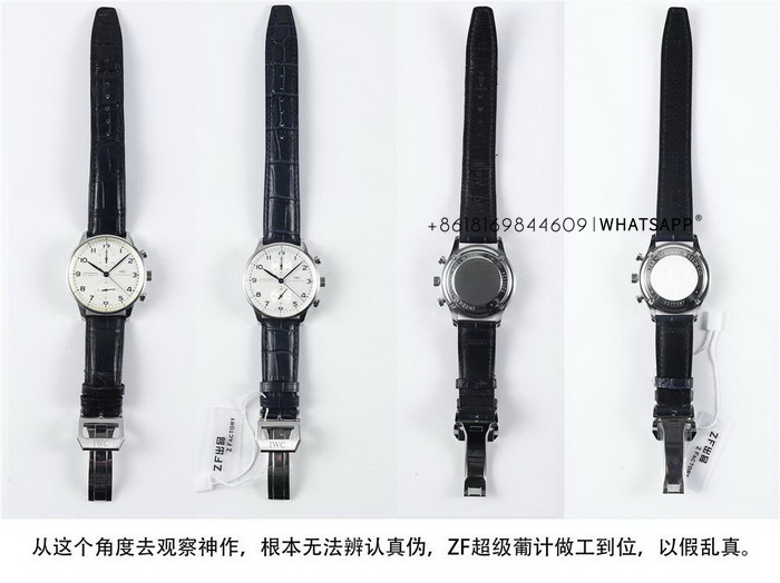 Для данного сравнения мы выбрали модель IWC Portugieser IW371446. Этот часы имеют конструкцию с закрытым задним крышкой, что снижает сложность их копирования. На изображении ниже слева показаны оригинальные часы, а справа — копия.