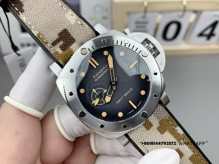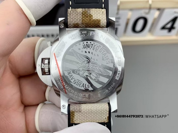 Эти часы — специальная серия, выпущенная Panerai в этом году. Корпус выполнен из нержавеющей стали диаметром 44 мм. Модель комплектуется камуфляжным ремешком, малым циферблатом секунд в стиле «мишень», а на задней крышке корпуса нанесён герб подразделения специального назначения.