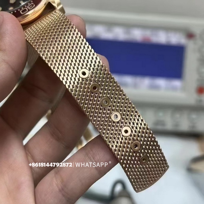 Самая отличительная особенность этих часов заключается в том, что их корпус изготовлен из бронзы, смешанной с другими металлами. Благодаря этому корпус имеет золотистый оттенок и весит больше, чем версия из нержавеющей стали.