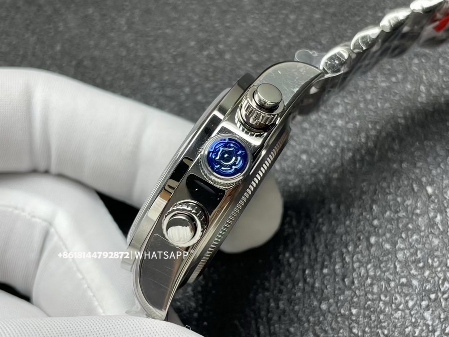 Эта расцветка получила среди любителей часов прозвище «Flamingo Blue». Одной из наиболее практичных функций данного хронографа является наличие кнопок с системой блокировки от попадания воды — как у Rolex Daytona, что делает модель многофункциональными механическими часами с отличной влагозащитой.