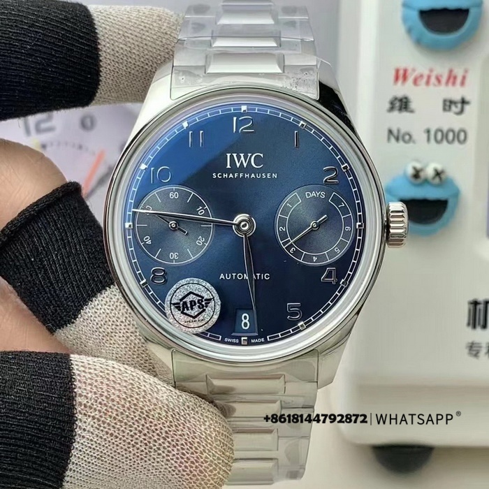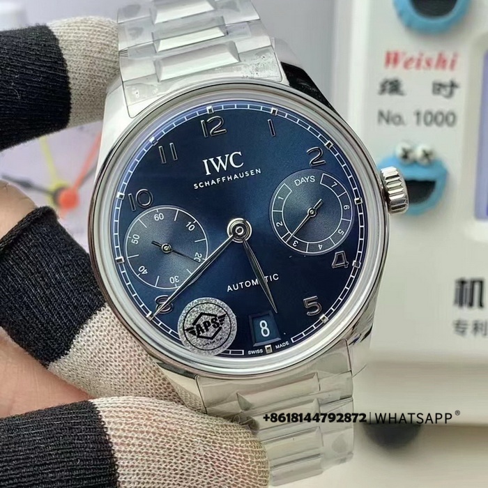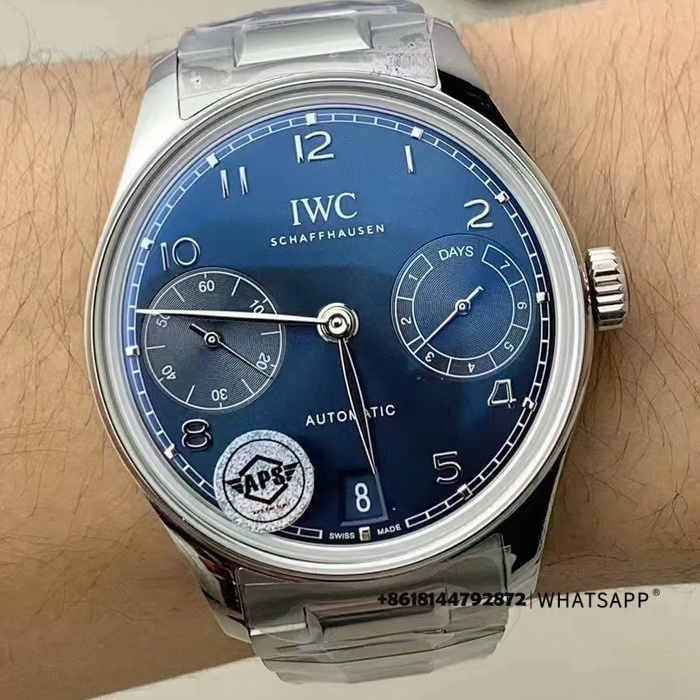Эта реплика IWC PORTUGIESER AUTOMATIC оснащена синим циферблатом и стальным браслетом. Версия со стальным браслетом появилась впервые в этой серии, что делает её особенно привлекательной для поклонников IWC со стальными ремешками.