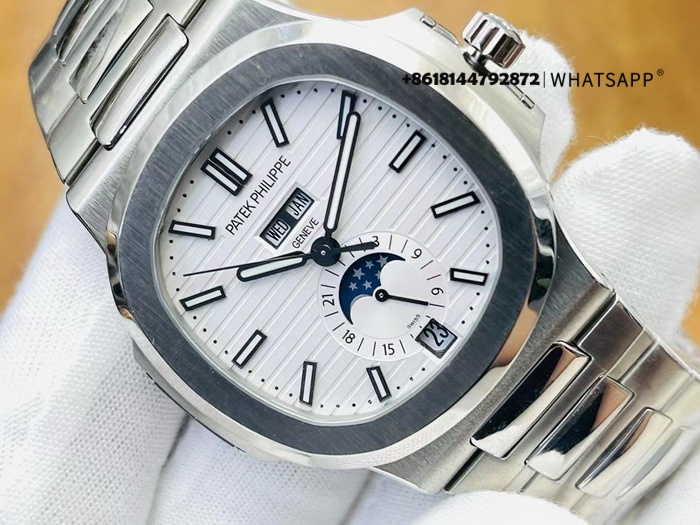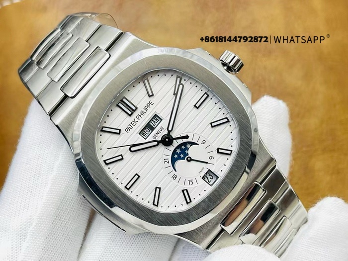 И переднее, и заднее стекло выполнены из сапфирового хрусталя. Диаметр корпуса составляет 40,5 мм. По общему уровню исполнения этот Nautilus 5726 сопоставим с моделью 5711. Для тех, кто предпочитает более сложный циферблат и многофункциональные часы, эта реплика Patek Philippe Nautilus 5726 является отличным выбором.