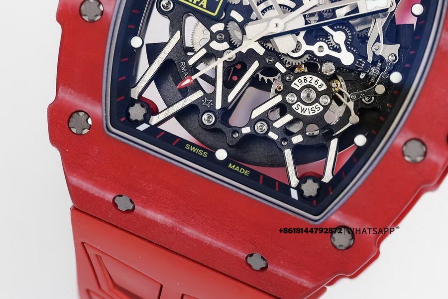 По части механизма часы оснащены новым интегрированным калибром RMAL1. Основная плата и мосты выполнены из титана Grade 5, подвергнутого пескоструйной обработке и покрытию PVD/Titaly для обеспечения максимальной жёсткости конструкции и идеальной гладкости поверхности. Ротор с регулируемой геометрией позволяет настраивать шесть положений лопастей, чтобы ускорить или замедлить эффективность подзавода. Частота баланса — 28 800 полуколебаний в час, механизм оснащён двойным барабаном, обеспечивающим более стабильный крутящий момент и запас хода 55 часов.