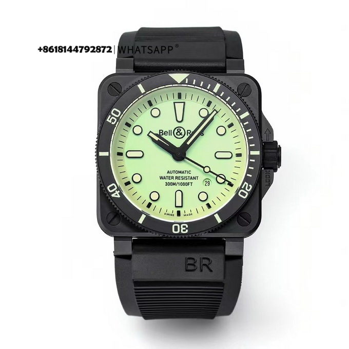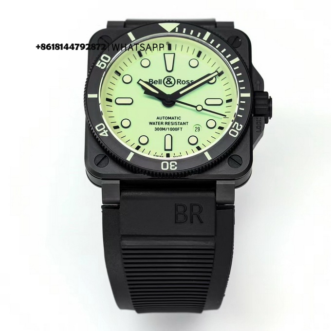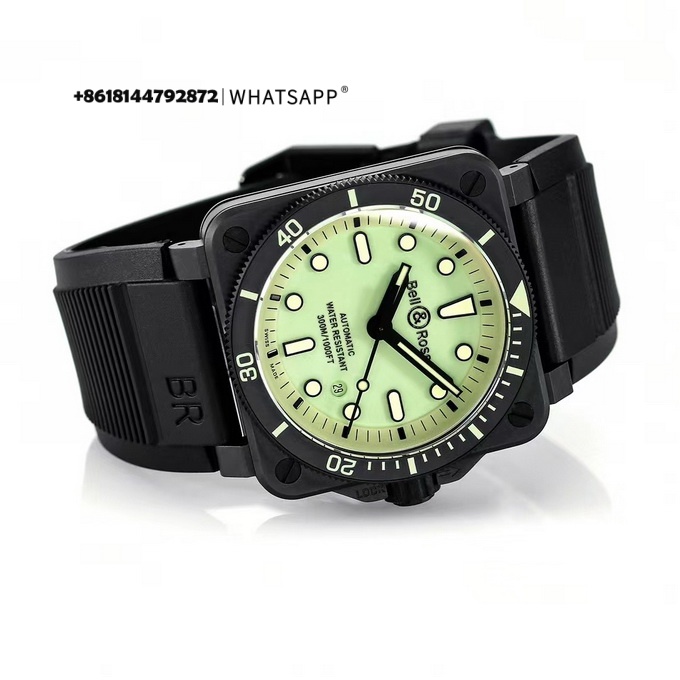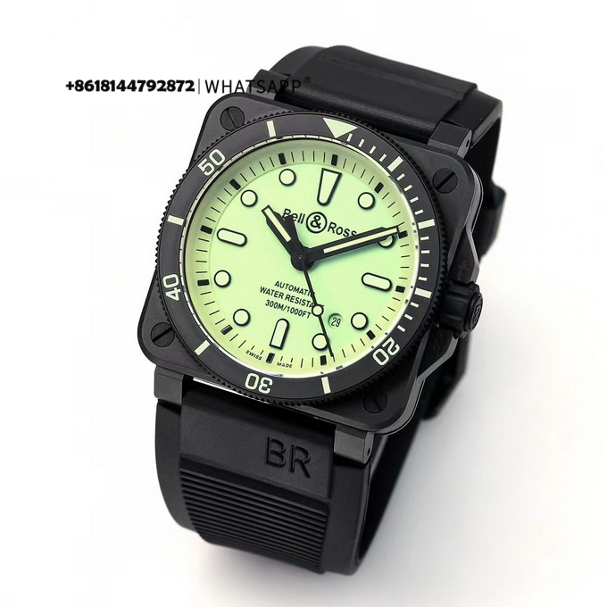 Сегодня мы представляем реплику часов от нишевого бренда BELLROSS. Этот бренд часто использует квадратный дизайн в своих моделях, а вся серия поддерживает высокую водонепроницаемость. Данная модель поставляется с двумя ремешками: тканевым и резиновым. Диаметр корпуса составляет 42 мм, корпус выполнен из прочной керамики на основе диоксида циркония. Часы оснащены калибром 2892, качество исполнения на высоком уровне. Это одна из наиболее рекомендуемых нишевых спортивных механических моделей. Весь циферблат покрыт швейцарским люминесцентным составом X1 Super-LumiNova®, что обеспечивает потрясающий эффект свечения в темноте.