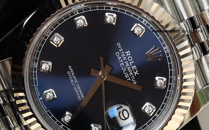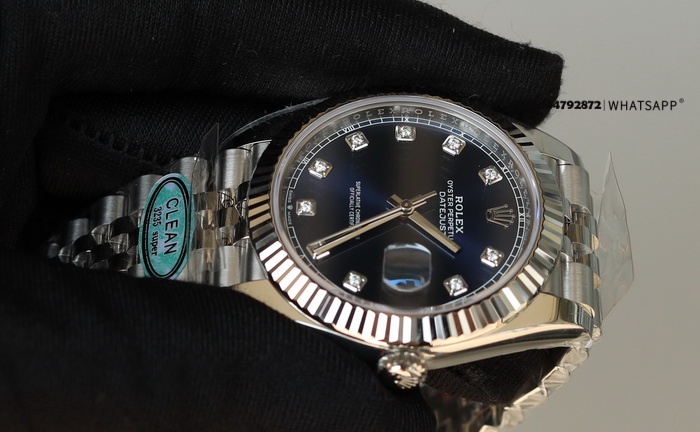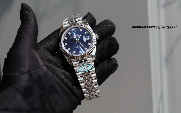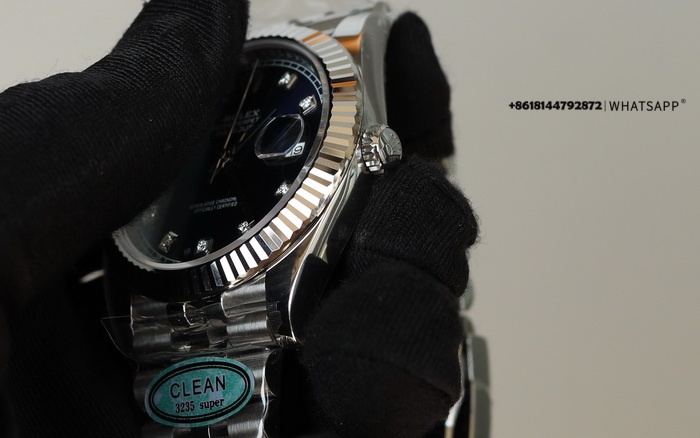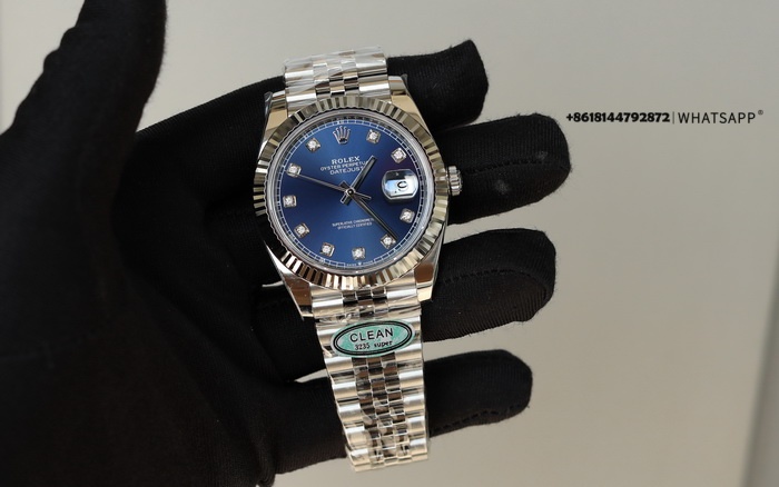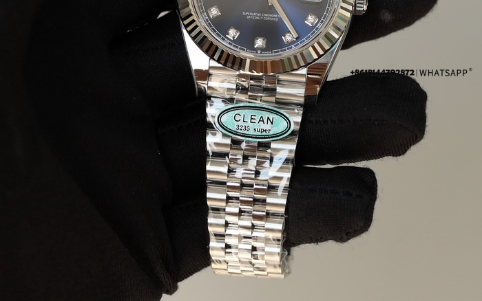 Эти часы являются репликой, произведённой фабрикой Clean. Корпус имеет диаметр 41 мм. Циферблат выполнен с алмазными метками часов и солнечным узором, внутри установлен реплицированный калибр 3235. Модель комплектуется браслетом Jubilee. Фотографии ниже сделаны при естественном и дневном освещении, на которых хорошо видно впечатляющий визуальный эффект циферблата.