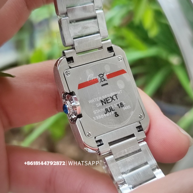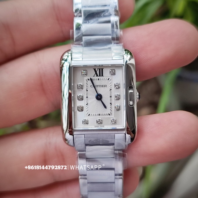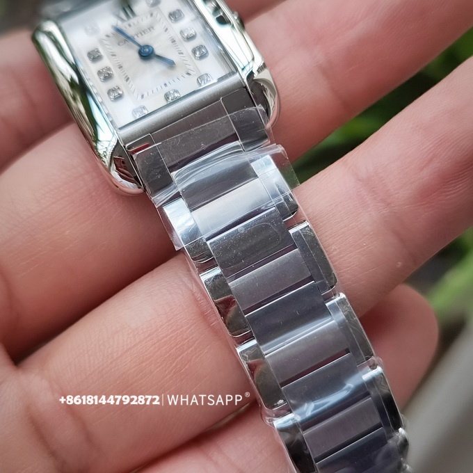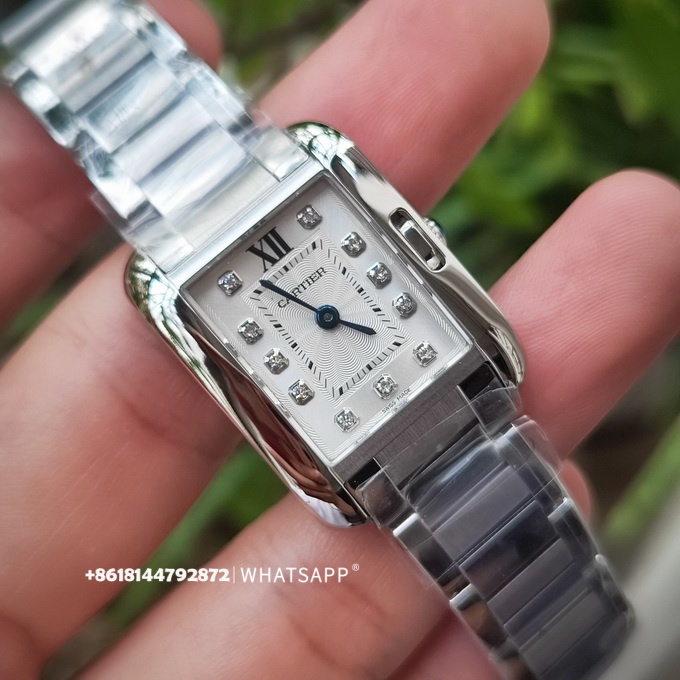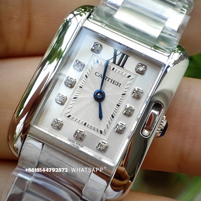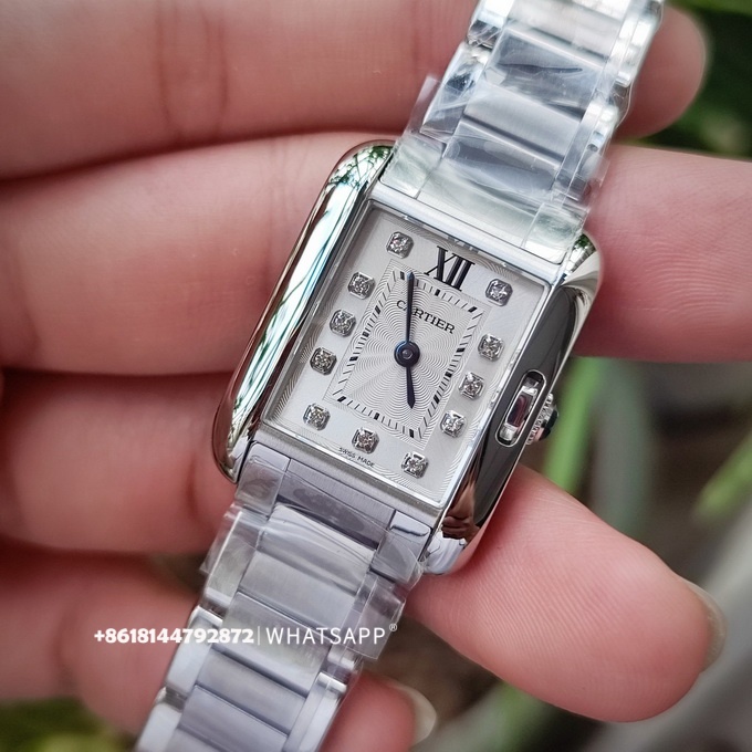 Эти часы имеют размеры 30,2 x 22,7 мм с прямоугольным дизайном и оснащены швейцарским кварцевым механизмом. Серия Tank Anglaise отличается от других тем, что заводная головка не выступает сбоку корпуса, что придаёт часам более обтекаемый и элегантный вид.