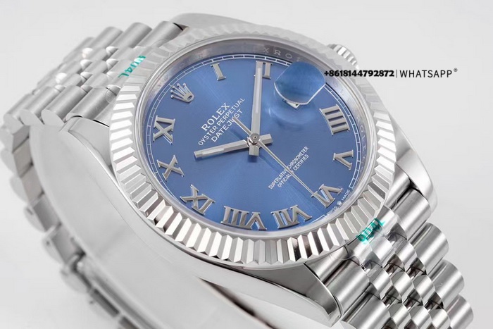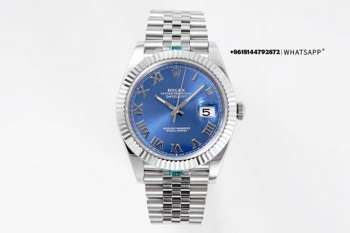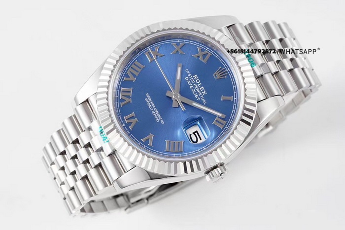 Часы имеют диаметр 41 мм и синий циферблат. В отличие от других моделей серии DATEJUST, здесь установлены металлические римские цифры в качестве часовых меток, и отсутствует функция люминесценции. Модель оснащена реплицированным калибром 3235 с запасом хода 70 часов. Помимо фабрик VS Factory и Clean Factory, данную модель выпускает также ZF Factory. В целом качество исполнения у всех фабрик схожее, однако ZF предлагает более низкую цену благодаря использованию калибра 2824, что делает её хорошим выбором для тех, кто ставит приоритет на соотношение цена/качество. Реплики часов, представленные на нашем сайте, тщательно отобраны и представляют собой лучшие версии на рынке — мы не предлагаем продукцию низкого качества от неизвестных производителей.